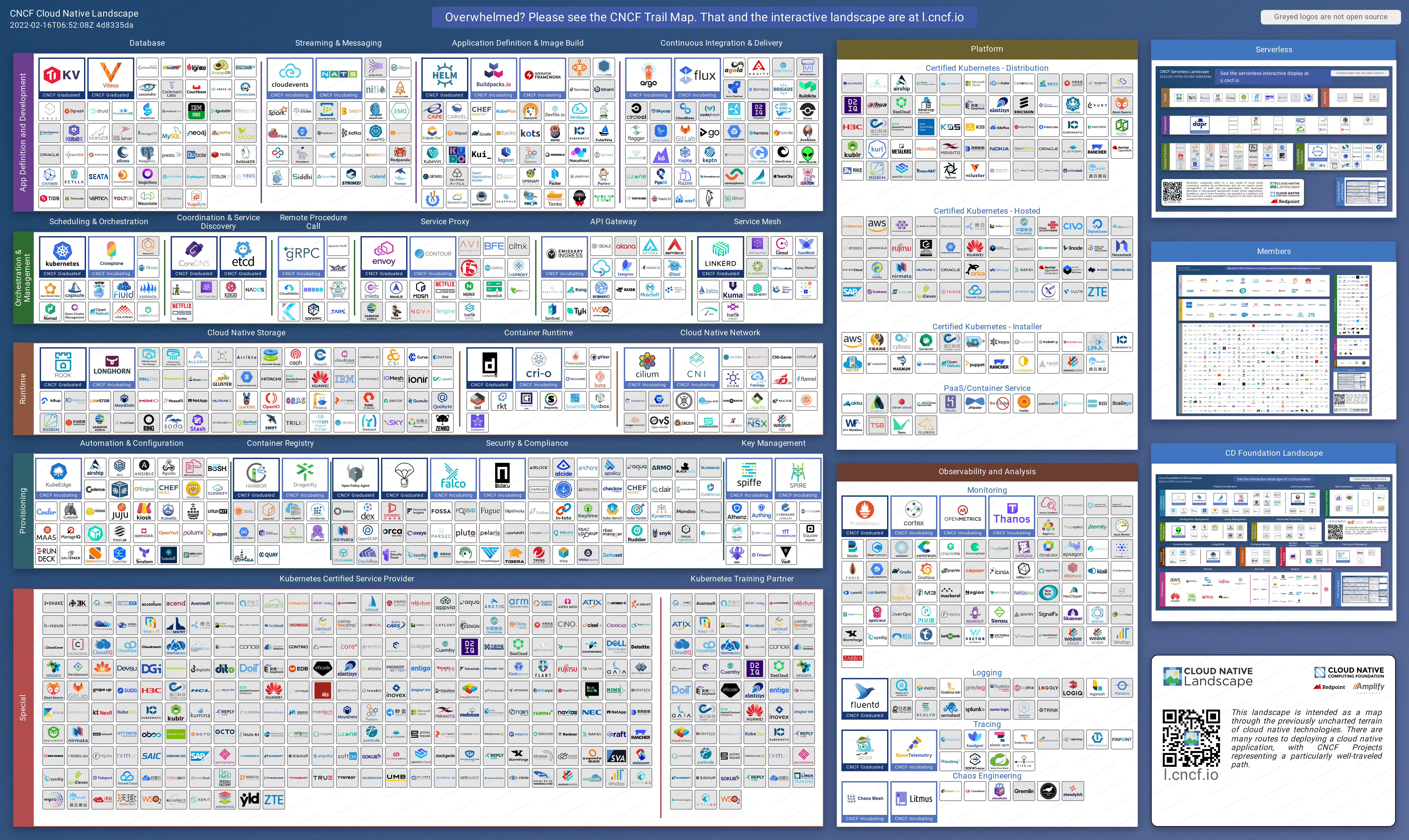 在 landscape.cncf.io 可以看到由 CNCF 所维护的云原生全景图。