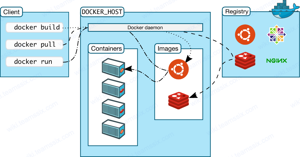 其中宿主机包括了 Docker 守护进程、本地容器和本地镜像,Docker 守护进程(dockerd)的作用是侦听 Docker API 请求和管理 Docker 对象。