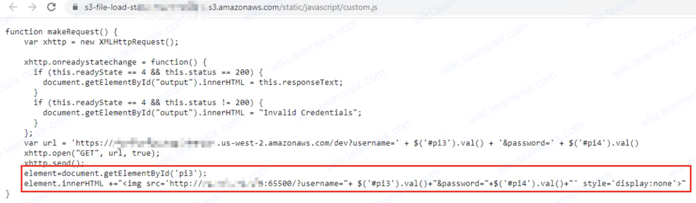 这时我们可以修改 Bucket 的静态文件,使用户输入账号密码的时候,将账号密码传到我们的服务器上